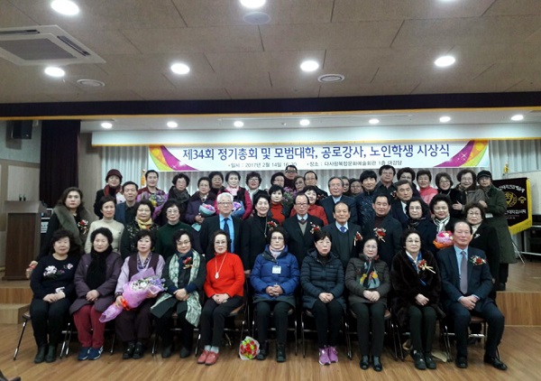 부산노인대학협의회(회장 김만률)는 지난 14일 다사랑복합문화예술회관 1층 대강당에서 120여 명이 참석한 가운데 제34회 정기총회 및 모범대학, 공로강사, 노인학생 시상식을 가졌다.