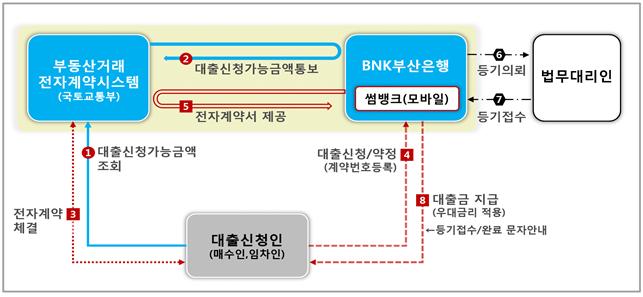 이제까지 주택자금대출을 실행하기 위해서는 금융기관을 수차례 직접 방문하여 대출가능여부를 상담하고 대출 약정계약서를 작성하는 등 많은 시간과 까다로운 절차로 마음을 졸였으나, 부동산 전자계약과 모바일뱅킹을 함께 이용하면 전국 어디서나 은행 방문 없이 대출 약정계약서를 작성한 후, 약정일자에 필요한 자금을 받아서 해당 부동산에 대한 소유권이전등기와 설정등기도 한 번에 간편하게 처리할 수 있는 장점을 누릴 수 있다.