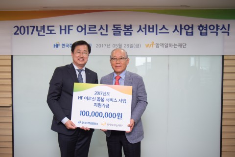 주택금융공사(HF, 사장 김재천)가 재단법인 함께일하는재단(이사장 송월주)과 ‘2017년도 HF 어르신 돌봄서비스’ 협약을 체결했다고 지난 26일 밝혔다.