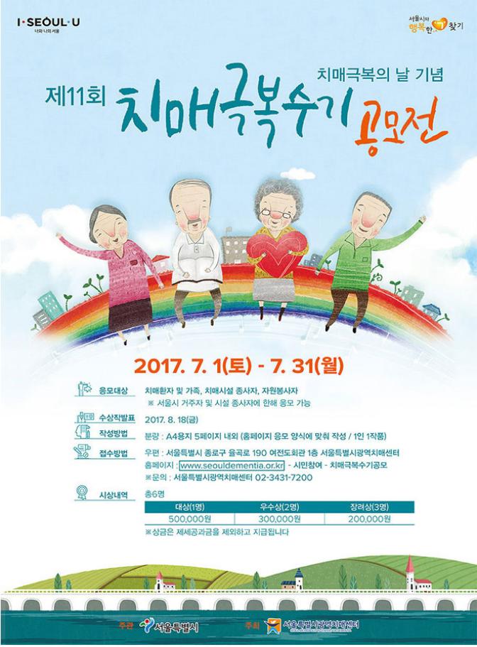 서울특별시는 치매환자 가족과 치매관련 기관 종사자, 자원봉사자를 대상으로 7월 31일까지 ‘제11회 치매극복체험수기공모전’을 접수한다.