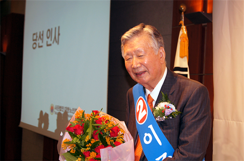 선거인단은 중앙회의 임원, 시·도 연합회장, 시·군·구 지회장, 해외지회장 등 284명으로 구성되었고, 이날 선거에서 대의원 272명의 표 중 기호 2번 이중근(부영그룹 회장) 후보가 114표(41.9%)를 얻어 93표를 얻은 기호 3번 김호일(前 3선 국회의원) 후보와 65표를 득표한 기호 1번 남상해(하림각 회장) 후보를 제치고 대한노인회장에 당선됐다.