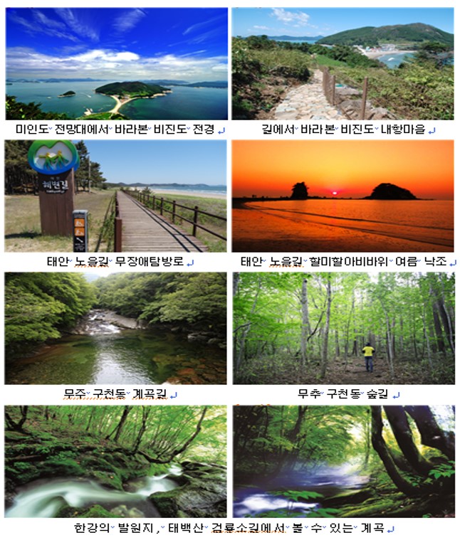 푸른 바다와 파도를 바라볼 수 있는 바닷길로는 ▶한려해상 비진도길 ▶태안해안 노을길이 선정됐다.