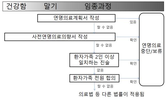 ?사전연명의료의향서(원하는 사람 작성가능) + 담당의사의 확인