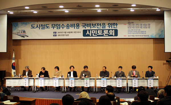 지난 14일 국회 헌정기념관에서 도시철도 무임승차 손실비용 해결을 위한 시민토론회가 열렸다.