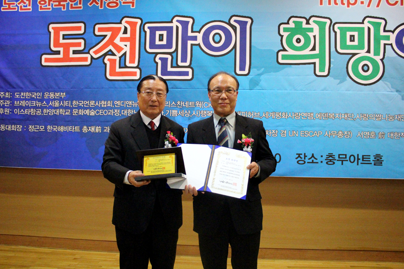 | 본사 이돈희(오른쪽) 수석부사장이 사회부문 수상을 하고 있다. |