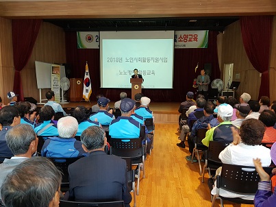 아산시지회(지회장 오치석)는 지난 9일 지회 4층 대강당에서 2018년 상반기 노인일자리사업 참여자 400명을 대상으로 지회장 인사말, 김정훈 강사(시청 안전총괄과)의 안전교육 그리고 김용배 사무국장 주관으로 활동교육을 각각 실시 하였다.