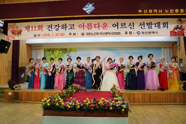 부산시연합회(회장 문우택)는 부산광역시 후원으로 지난 7월 20일 부산시 노인종합복지관 대강당에서 “제11회 건강하고 아름다운 어르신 선발대회”를 각 구군지회에서 추천된 어르신 16명이 참가한 가운데 신창호 사회복지국장 등 내빈과 시민, 가족 등 400여 명이 참석한 가운데 성대히 열렸다.