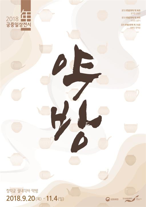 ‘궁중일상전시’는 우리나라의 대표적인 문화관광자원인 궁궐에서 우리의 역사와 문화유산에 관한 내외국인의 이해를 높이고자 마련되었으며, 특히, 올해는 궁궐 내 치유의 공간인 궁궐 속 ‘약방’을 소개하고자 한다.