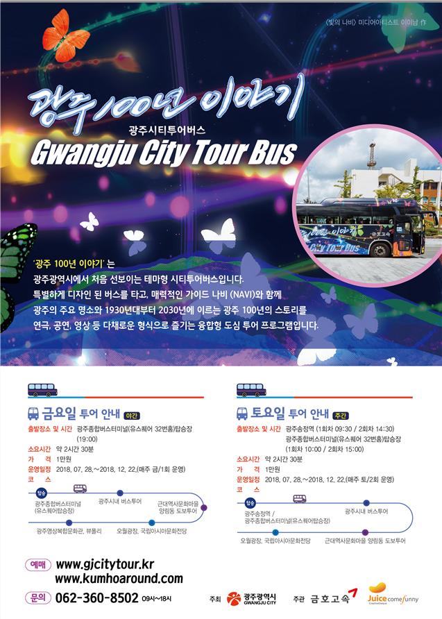 이야기 시내관광(스토리 시티투어) 버스는 주요 관광지를 나열식으로 소개하는 것에서 벗어나 핵심 관광지의 주제를 설정하고 이야기와 연극, 음악 등을 융합시켜 도시의 브랜드와 관광 자원으로 만드는 사업이다. ‘광주 100년 이야기 버스’는 지난해 ‘김광석 음악버스’, ‘여수 밤바다 낭만버스’에 이어 3번째로 추진되는 사업이다.