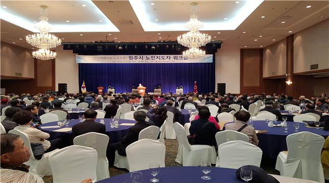 원주 인터불고 호텔에서 개최된 이날 워크숍에는 원주시 관계자와 많은 내빈을 비롯하여 관내 경로당 회장 등 450여 명이 참석하여 성황을 이루었다.