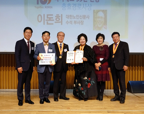 2019년은 3·1절 100주년 기념의 해로 독립선언서 민족대표 33인 기념을 위해 분야별 국가대표 33인이 수상했다. 이돈희 본지 수석 부사장 겸 수석 논설위원은 충효경로사상 56년 활동과 어버이날·노인의 날 제정 공로를 인정받아 ‘충효경로사상’ 분야에서 수상의 영광을 차지했다.