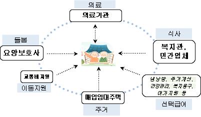 노인은 대부분 의료와 돌봄, 주거 등에 대한 복합적 욕구가 있으나, 기존에는 서비스가 충분하지 않고 개별적으로 제공되어 실질적으로 집에서 생활하는 것이 어렵다는 지적이 있었다.  그간, 노인을 돌볼 가족이 없거나, 돌볼 여유가 없는 빈곤층은 살던 곳을 떠나 병원이나 시설에서 생활해야 했다.