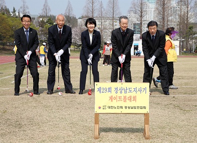 ‘제29회 경상남도지사기 노인 게이트볼 대회’가 지난 28일 창원시 종합운동장 내 보조경기장에서 도내 18개 시군 어르신 선수단 등 550여 명이 참석한 가운데 개최됐다. 경상남도가 주최하고 대한노인회 경남연합회(회장 신희범)가 주관한 이번 대회에는 65세 이상 어르신들로 구성된 총 40개 팀(시군노인회 지회별 각 2개 팀)이 참가해 열띤 경쟁을 펼쳤다.