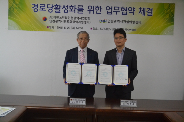 대한노인회 인천시연합회와 인천시자살예방센터는 지난달 29일 ‘자살예방 관리 및 경로당 활성화를 위한 업무협약’을 체결했다.