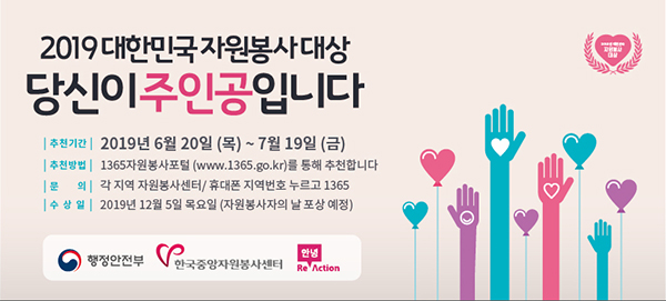 `2019 대한민국 자원봉사대상' 후보자, 7월 19일까지 추천 접수