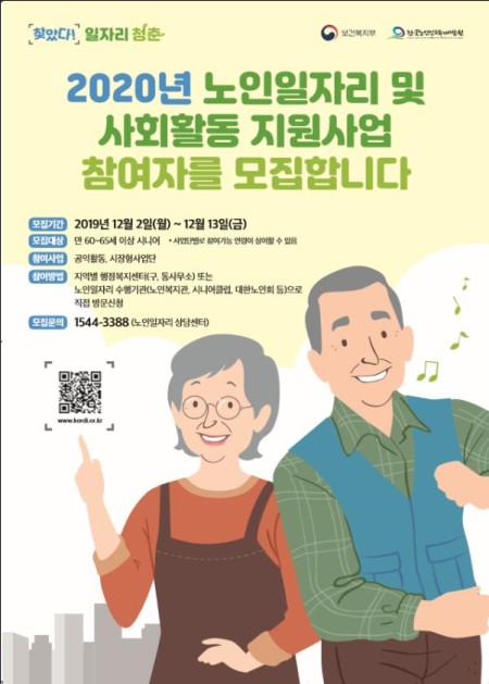 2020년 노인일자리 및 사회활동 지원사업 신청하세요! (12.2~12.13)