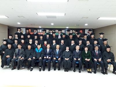 홍성열 군수를 비롯한 내외귀빈과 가족이 모인 가운데 졸업생 41명은 멋진 사각모를 쓰고 학창시절로 돌아가서 볼이 발그레 상기 되신 채 행복한 졸업식을 가졌다.