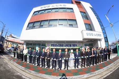 양양군 노인회관 개관 기념식을 맞아 신축건물 건립에 힘쓰신 모든 분들의 노고에 고마움과 감사를 전하며 많은 도움을 준 5명에게 공로패와 감사패 전달식을 진행했다.