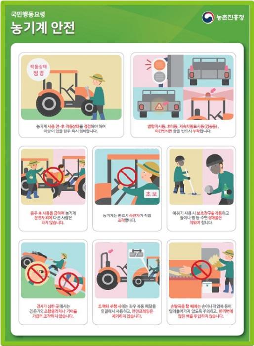 농기계 사고를 예방하려면 다음과 같은 안전수칙을 잘 지키도록 해야 한다.
