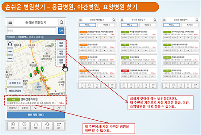 ‘손쉬운 병원 찾기’는 피서지 등에서 갑작스러운 부상 등 응급상황 발생 시 급하게 찾아야 하는 △응급병원 △야간병원 등 내 주변을 기준으로 가장 가까운 곳부터 병원정보를 제공한다.