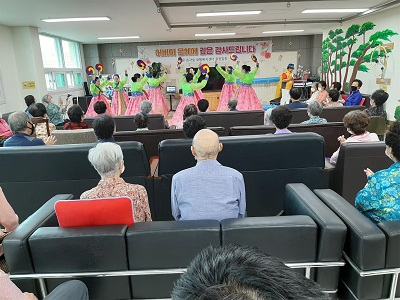 이번 위문공연은 국민건강보험공단에서 장기요양등급을 받은, 독거노인 어르신이나 어르신 혼자 일상생활이 어렵거나 거동이 불편하여 보호자가 필요한 분들이 낮에 가족이 출근하여 보호자 없이 혼자 생활할 수 밖에 없는 어르신들이 입소하여 낮 동안 보호와 식사, 여러 가지 재활 프로그램을 통해 즐겁고 안전하게 지낼 수 있도록 보호하는 취지의 시설인데, 45명의 어르신들에게 민요와 가요, 한국무용(어화 아라리야, 어화 사랑이야) 공연으로 흥겹고 즐거우며, 행복한 시간을 선사했다.