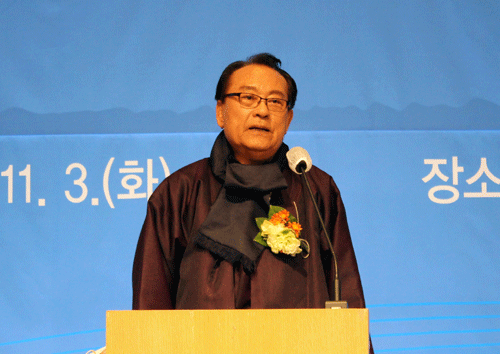 취임 인사를 하고 있는 김호일 대한노인회장.