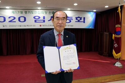 회장 선거에 단독으로 출마한 이종한 회장은 대의원 223명 중 196명이 참석한 가운데 실시된 투표에서 162표(82.6%)의 지지를 얻어 제17대 경기도연합회장에 재선된 것이다.