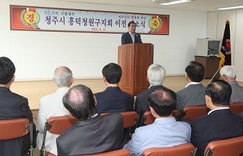 노인회는 통합 청주시가 출범하면서 구)청주시지회와 구)청원군지회 조직을 상당서원지회와 흥덕청원지회로 지난해 개편하였고, 흥덕청원구지회 사무실은 구)청원군지회가 사용하던 청주상당노인복지관(옛 청원군노인복지회관)사무실 일부를 사용해 장소가 협소하고, 흥덕·청원구 지역이 아닌 상당구에 있어 어르신들이 이용에 불편을 겪어왔다.