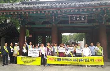 한국노년인권협회(KSHRA, 회장 조정현)는 광복 70주년을 기하여 지난 11일 서울 종로구 탑골공원 정문에서 일본의 역사 왜곡과 일본군 위안부에 대한 참회, 사죄 및 배상을 촉구하는 시위를 벌였다.