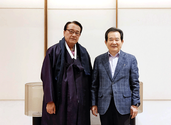 | 기념촬영을 하고 있는 김호일 회장(왼쪽)과 정세균 총리. |