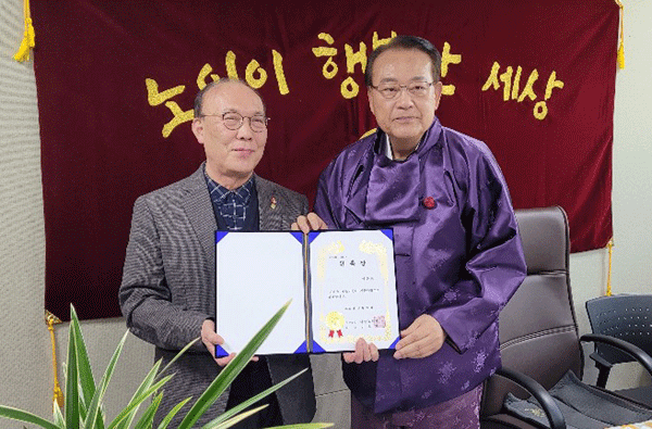 대한노인회 중앙회(회장 김호일)는 이돈희 본지 수석부사장 겸 수석논설위원을 대한노인회 자문위원으로 위촉하고 지난 21일 대한노인회 중앙회장 집무실에서 위촉장을 수여했다.
