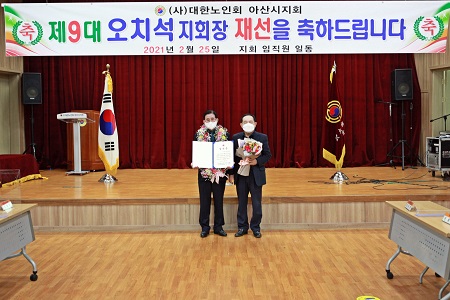 재선에 성공한 오 지회장은 “지난 4년간 노인복지와 권익신장을 위해 저와 함께 지회를 잘 이끌어 주신 임원, 이사, 경로당 회장님께 감사드리며 더욱 열심히 하라는 뜻으로 안다”며 “그동안 쌓아온 다양한 경험을 바탕으로 아산시지회를 발전시키는데 혼신의 노력을 다하겠다”고 말했다.
