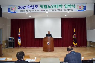 충청남도연합회(회장 전대규) 직할노인대학(학장 이병학)은 지난 3일 충남연합회 3층 대회의실에서 「2021학년도 직할노인대학 입학식」을 약 80여 명이 참석한 가운데 실시하였다.