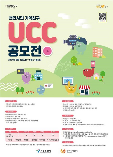 서울시는 치매 친화적 환경 조성에 대한 공감대를 확산하고, 치매환자를 돕는 ‘기억친구 프로젝트’를 알리기 위해 ‘천만시민 기억친구 UCC 공모전’을 개최한다.