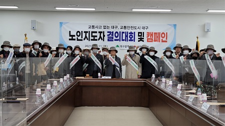 이에 대구시에서는 교통안전 문화의식 향상과 교통사고 예방을 위한 캠페인 등 어르신 교통안전 의식개선을 위한 다양한 활동으로 어르신 교통사고를 줄이기 위해 복지관 경로당 등 찾아가는 어르신 교육과 어르신들이 많이 모이는 곳을 찾아 안전 홍보 전개, 어르신 운전면허 자진반납 등 적극적인 예방 활동을 추진함에 따라 대구시연합회에서도 ‘운전 중 휴대폰 사용금지, 무단횡단 NO!’, ‘배려와 양보로 어르신을 지켜주세요’를 슬로건으로 남구 성당시장과 달서구 두류공원 주변 등 어르신들이 많이 모이는 장소를 찾아 교통사고 예방 캠페인 활동을 하고 있다.