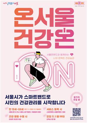 오세훈 시장의 공약이자 `서울비전 2030'에서 ‘안심도시’ 구현을 위해 제시한 ‘서울형 스마트 헬스케어’가 〈온서울 건강온〉이라는 이름으로 시범사업을 시작한다. 11월 1일부터 만 19세∼64세 서울시민 5만 명을 모집해 오는 9일부터 순차적으로 서비스에 들어간다.