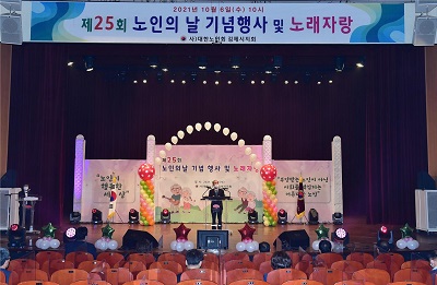 더불어 2부 행사에서는 각 읍면동을 대표한 어르신들의 노래자랑을 무관중으로 진행하며 각 경로당에 IP TV를 통해 생방송으로 방영하여 코로나19로 인해 현장에 참여하지 못한 어르신들과 온라인으로 함께 했다.