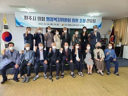 원주시지회(지회장 유종우)는 지난 24일 노인회 회의실에서 원주시의회 행정복지위원회(위원장 이숙은)를 초청하여 경로당 활성화를 위한 간담회를 개최하였다.