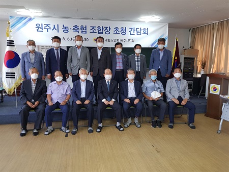 원주시지회(지회장 유종우)는 지난 6일 노인회 설립 이래 최초로 지회 회의실에서 ‘원주시 관내 농·축협 조합장 초청 간담회’를 개최하였다.