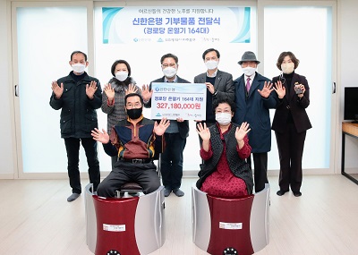 인천시 미추홀구(구청장 김정식)는 지난 30일 신한은행 미추홀구지점으로부터 3억 2천700만 원 상당 의료용 온열기 164대를 전달받아 경로당 164개소에 지원했다. 경로당 내에 노인들을 위한 통증 완화 장비가 보강된 셈이다.