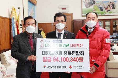 이명식 충청북도연합회장은 “코로나 팬데믹으로 어려운 시기임에도 지역의 어르신들이 자발적으로 참여해 모은 성금으로 지역을 위해 가치 있게 써주면 좋겠다”고 전했다.