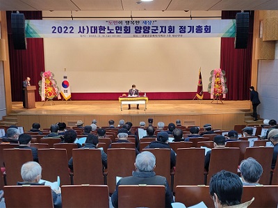 양양군지회(지회장 전용우)는 지난 11일 양양문화복지회관 대강당에서 지회 이사 15명, 경로당 회장 133명을 대상으로 2022년 양양군지회 정기총회를 개최하였다.