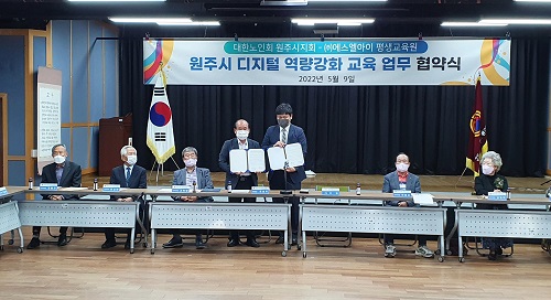 원주시지회(지회장 유종우)와 ㈜SLI평생교육원(대표이사  박진석)은 지난 9일 경로당 디지털 역량강화 교육을 위한 업무협약을 체결하였다.