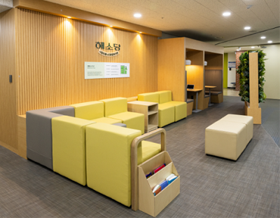 △환영과 존중의 ‘웰컴데스크’ △대화와 교류의 ‘커뮤니티 공간’ △결합과 분리가 쉬운 ‘마음껏 테이블’ △편안하고 안정된 상담공간 ‘마음튼튼 상담실’ △마음을 주고받는 ‘마음나눔 대화부스’를 마련했다.