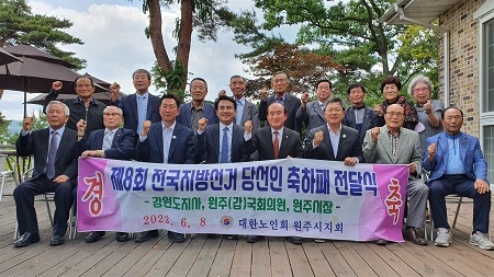 오찬을 겸한 이날 축하패 전달식은 선거운동 노고 위로와 당선 축하를 위하여 원주시지회에서 마련하였으며, 이 자리에는 김진태 강원도지사 당선인, 박정하 원주(갑)국회의원 당선인, 원강수 원주시장 당선인이 참석하였으며, 노인회에서는 노인회 임원, 고문, 자문위원 등이 참석하였다.