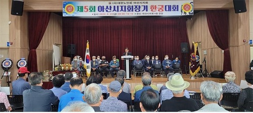 아산시지회(지회장 오치석)는 지난 24일 지회 4층 강당에서 임원·이사 및 각 분회별 대표선수 등 200여 명 이 참석한 가운데 제5회 아산시지회장기 한궁대회를 개최했다.
