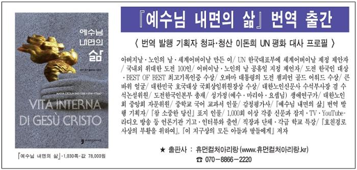 특히 이 수석부사장은 수년 전부터 예수님이 부활하신 후 1700년 가까이에 온 인류에게 최초로 말씀하신 예수님 당신의 내면의 삶을 기록하게 한 이탈리아 도서인 VITA INTERNA DI GESU CRISTO를 한국어와 영어로 번역하여 출판할 것을 기획해 왔다. 「예수님 내면의 삶은 가톨릭의 총본산인 이탈리아 로마 성 베드로 수도원의 M.C 바이즈 원장 수녀가 280여 년 전에 예수님의 말씀과 계시를 직접 받아 저술한 900페이지가 넘는 방대한 책으로, 바이즈 수녀에게 직접 말씀하시고, 그 말씀을 즉시즉시 기록하게 하시어 성 베드로 수녀원은 물론, 로마 교황청에서도 출판 인가를 받고 출판한 책인 만큼 이 수석부사장은 이 책의 진가를 잘 알고 있으므로 이 책을 종교를 초월하여 성경과 같이 전 국민에게는 물론 이 지구상의 모든 아들과 딸들인 전 세계 만민에게 널리 보급함과 동시에 도서 보급을 통한 복음선포 전파에 큰 사명을 가지고 있다고 강조했다.