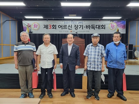 25개 읍면동을 대표하여 장기, 바둑 선수 50여 명이 출전하여 열띤 경기를 진행한 결과 장기 부문에서는 우승 김태환(귀래면), 준우승 방성혁(신림면), 3위 이응복(우산동) 어르신이 차지하였고, 바둑 부문에서는 우승 박신근(지정면), 준우승 박태인(신림면), 3위 신상국(태장2동) 어르신이 차지하여 푸짐한 상품을 받았다.