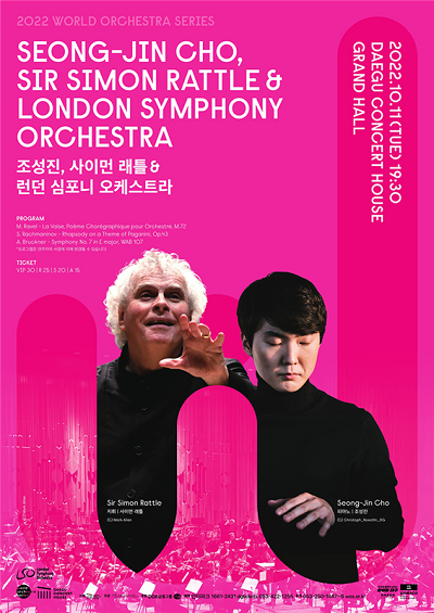 독보적인 실력과 팬덤을 소유하고 있는 런던 심포니 오케스트라는 이번 공연에서 2017년부터 런던 심포니의 음악감독 및 상임 지휘자로 활동해온 사이먼 래틀의 지휘 아래 라벨의 오케스트라를 위한 무용시 ‘라 발스’와 압도적인 재능과 타고난 음악성으로 전 세계의 뜨거운 사랑을 한 몸에 받는 피아니스트 조성진이 협연하는 ‘라흐마니노프 파가니니 주제에 의한 랩소디’, 쉽게 만나볼 수 없는 대곡인 ‘브루크너 교향곡 제7번’으로 청중들의 넋을 빼앗는 무대를 선보일 예정이다.