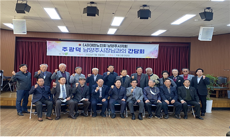 남양주시지회(지회장 윤해원)은 지난 11월 8일 주광덕 남양주시장과 지회2층강당에서 남양주시지회 임원 및 분회장들과 간담회를 진행했다.  이번 간담회는 지난 7월 오찬 간담회 이후 2번째로 갖는 간담회 이다.